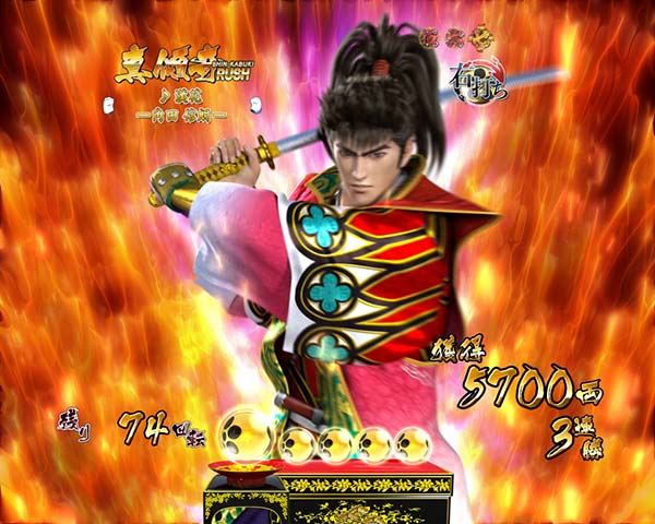 なお、慶次ボタン演出は七テンパイに変化or同一変動で2回出現した場合は大当り濃厚。