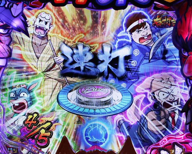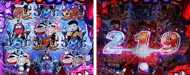 鬼RUSH中と演出は基本変わらないものの、バカ速装置の発動により、1変動あたりの消化速度が0.5秒と大幅にアップ。各予告やリーチの信頼度も上昇している。
