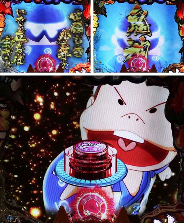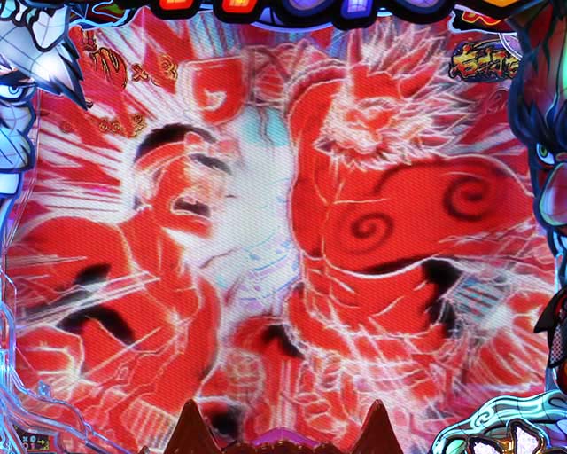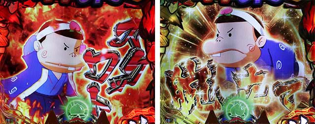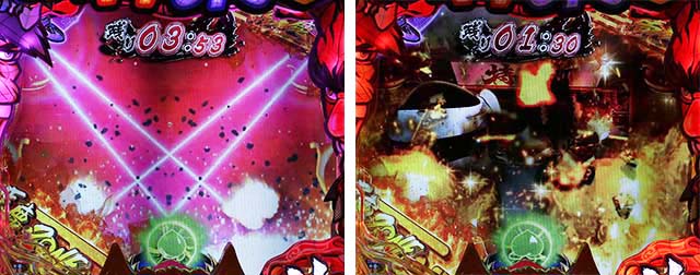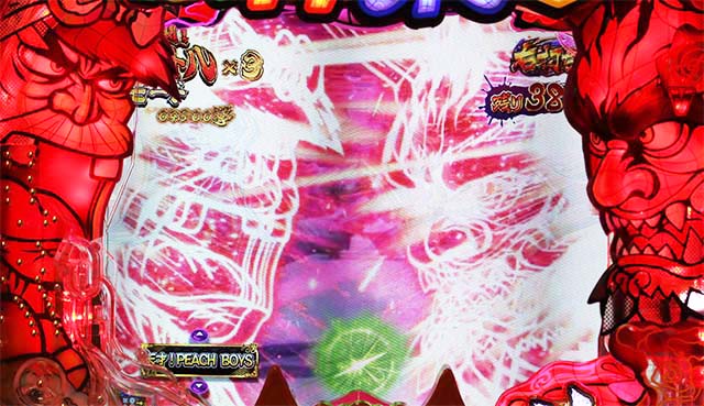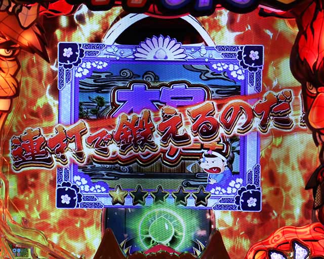 激闘!鬼バトルモードとは異なり赤パターンでもチャンス程度。この違いには要注意だ。一方、金なら超激アツとなる。