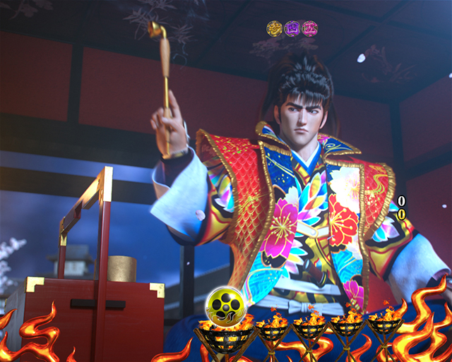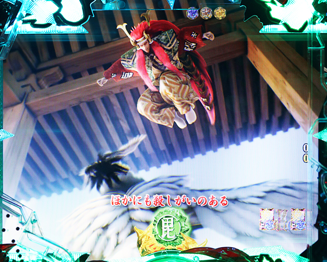 天槍乱舞役物が傾奇御免舞台幕役物を切り裂けば発展する。