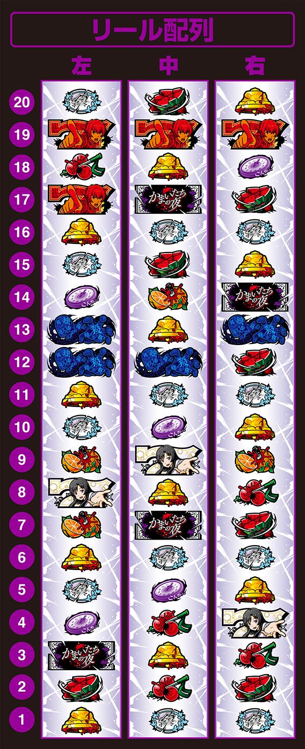1枚役は配列上、順押しではすべてをフォローすることができないが、中押し消化なら停止形に応じてすべてフォローすることが可能。