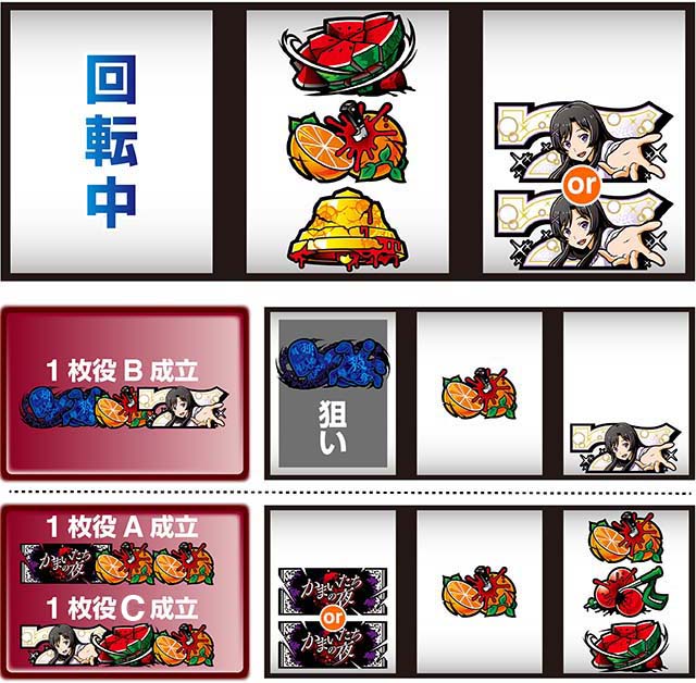 3種類ある1枚役をすべてフォローできないデメリットがあるので、演出発生の有無で中押し手順と併用するのもありだ。