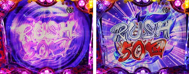 時短中に「RUSH図柄」が停止すると突然時短当選。50 or 75 or 100 or 200回転の時短が再セットされるので、時短中は如何に1/73.6の突然時短を引き、時短を延命させるかが重要となります。