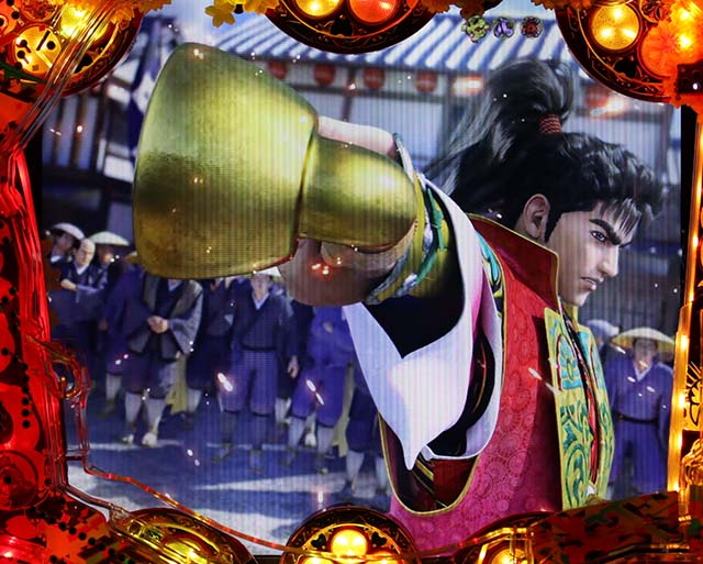 RUSH中に突入するたび、『真傾奇RUSH』、『一騎駆RUSH』、『西班牙RUSH』の3種類からモード選択が可能。レバーを押し込むと、プレミアム演出の発生頻度が大幅にアップする極RUSHを選択できるようになります。この辺は前作と同様ですね。
