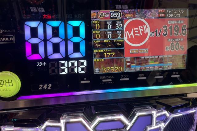 導入から半年が経つ現在でも高い稼働を誇る同機種ですが、その高い稼働率ゆえに宵越し狙いをするにはもっとも適しているし、ホールの扱いも文句なしの◎。当企画でも打つ機会が多かった1台です。