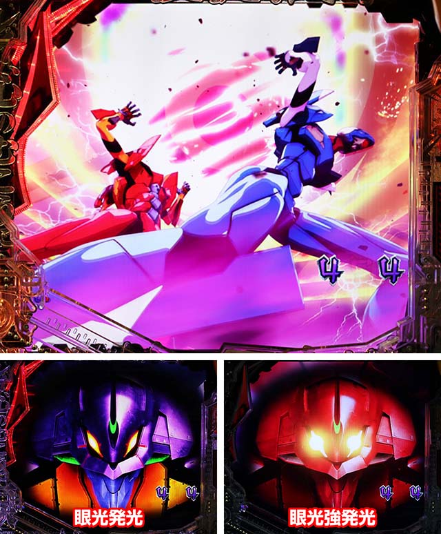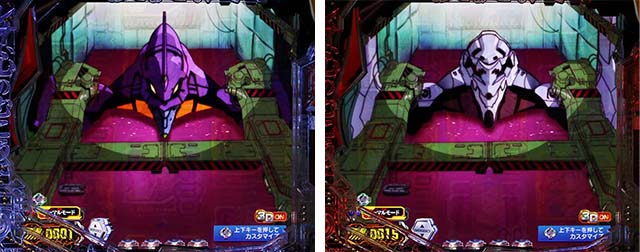 こちらも通常時とエヴァ機体の序列が同じで、初号機の登場が最重要。チャンスアップは、発展直後の機体名・赤と当落時のレバー操作となる。