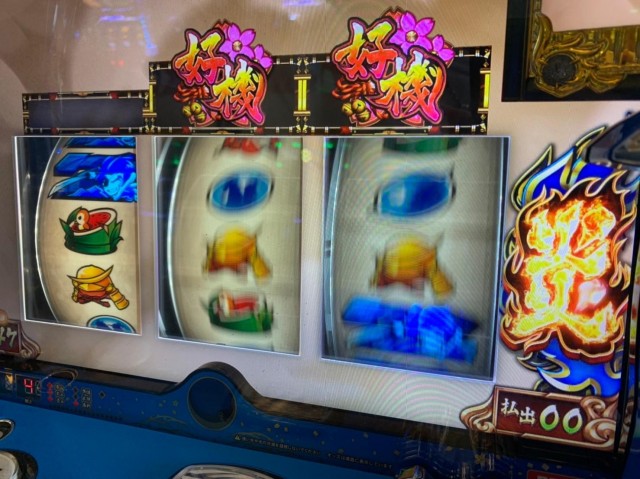 いかに7を揃えられるかでART「隻眼ノ乱」のゲーム数が変わる。それゆえに決戦が大事な機種ですが、なによりこの決戦は消化中も非常に面白く、脳汁ブッシャーっとたぎりまくりな瞬間なワケです。