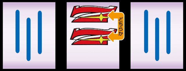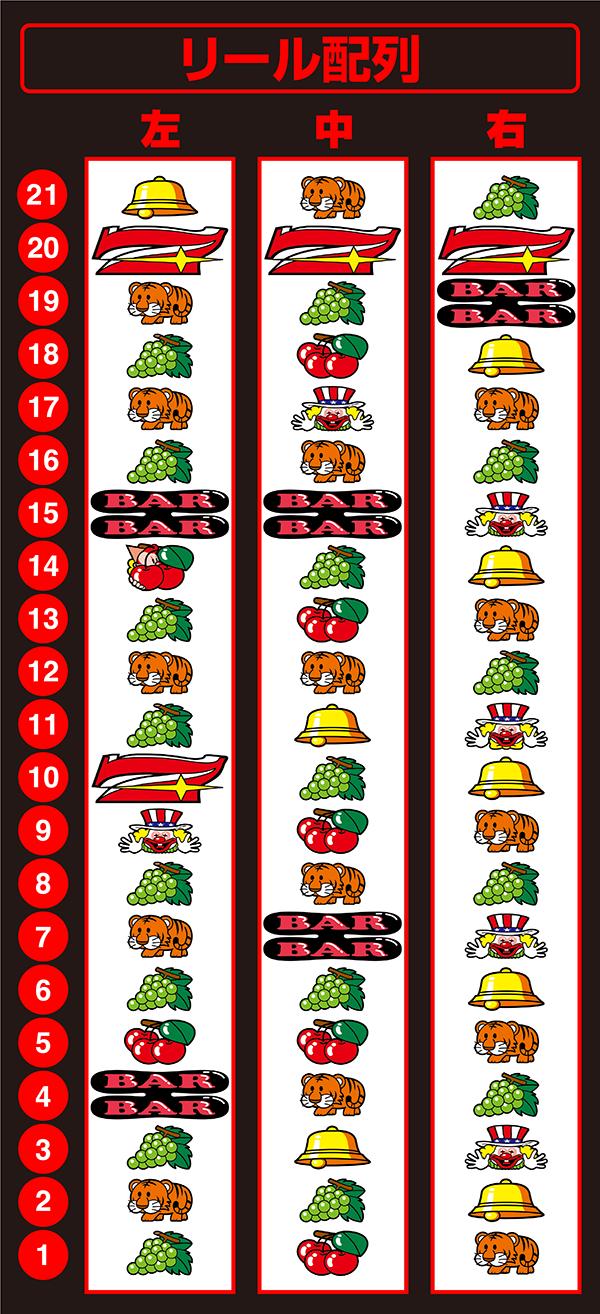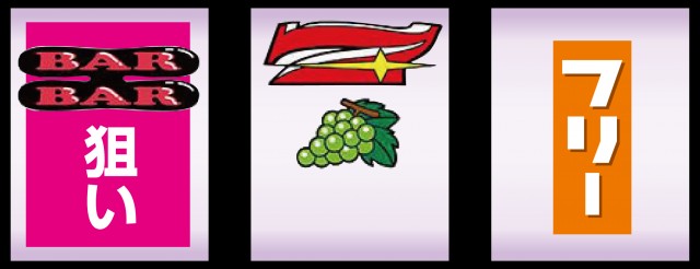 上or中段に7が停止した場合はブドウもしくはチェリーが成立しているので、左リール枠上or上段にBARを狙い右リールをフリー打ちすればOKだ。