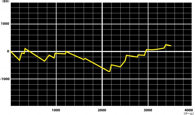 この設定6は序盤ふるわずマイナス域となるも3000G付近でプラスに浮上。この後もゲーム数を消化できれば高設定らしいデータになるはずである。
