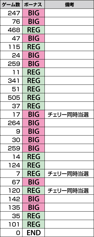 | チェリー+REG | 2回(1/1752.5) |
