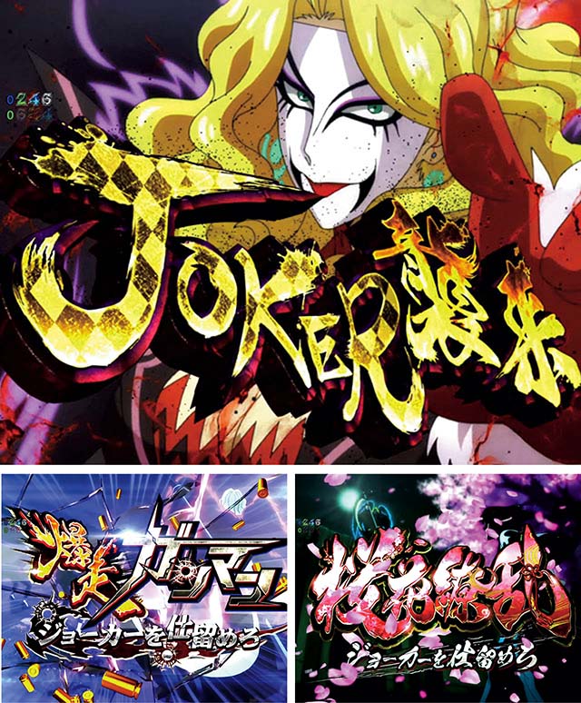 ジョーカー以外の敵が登場するとGOLDENバトルに発展。対戦相手やバトルの種類、味方の援護やルート分岐など、さまざまな要素が勝敗を左右します。対戦相手がクラブなら信頼度の高いバトルに発展するチャンス。また、バトルには序列があり、疾走 < 決戦 < 激闘 < 神髄の順に信頼度が高く、神髄バトルに発展すれば大当り濃厚ですよ~!