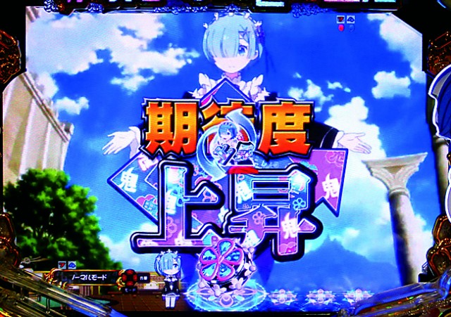 鬼化したレムが迫り来る予告で、大当りの変動で鬼がかりが成立。発生時点で連チャン濃厚!