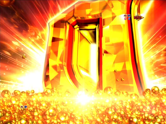 RUSH中は紫図柄揃いからの昇格率が約3回に1回。300発が3000発に変わるだけに喜びもひとしお。なお、赤図柄では3が揃った場合は3000発昇格濃厚だ。どちらも大当り中にロゴ落下で昇格となる。