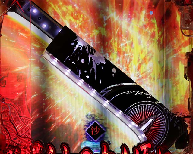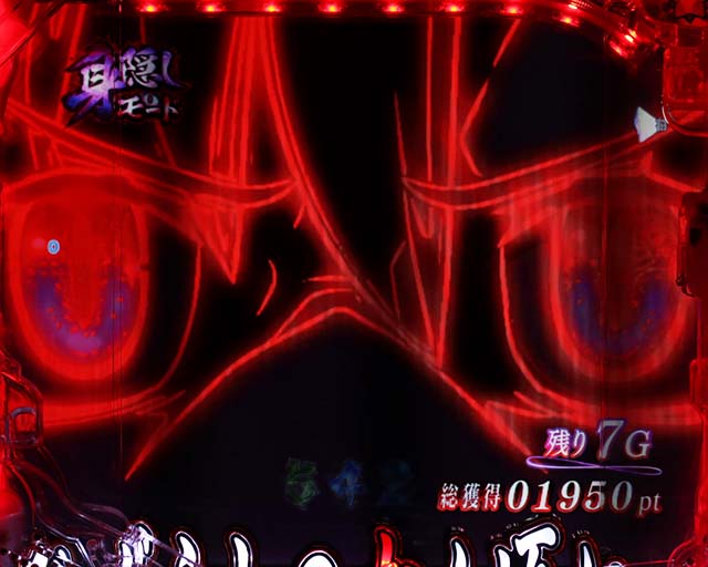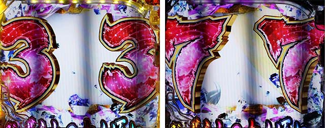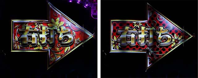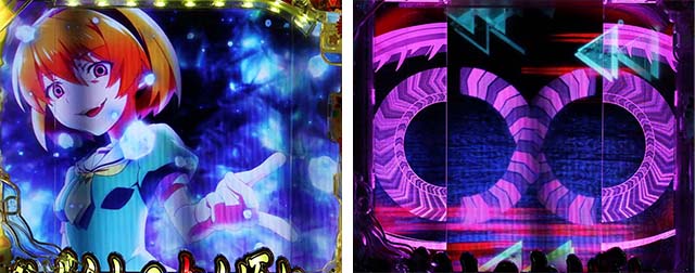 液晶画面左右のシャッター発光が突入契機で、ボタンPUSHで閉鎖から移行する先読みゾーン。突入後は画面の右上と左下に帯が出現。