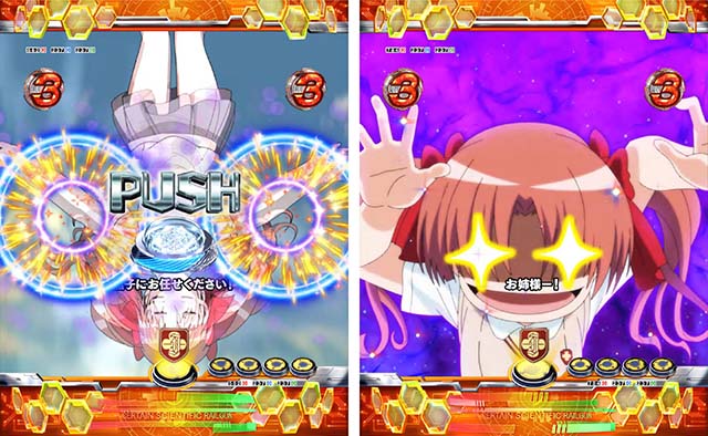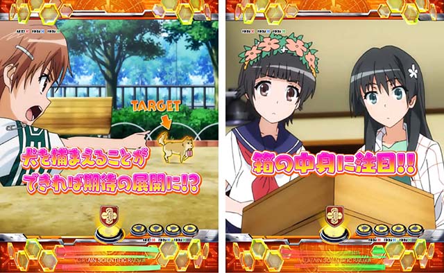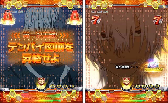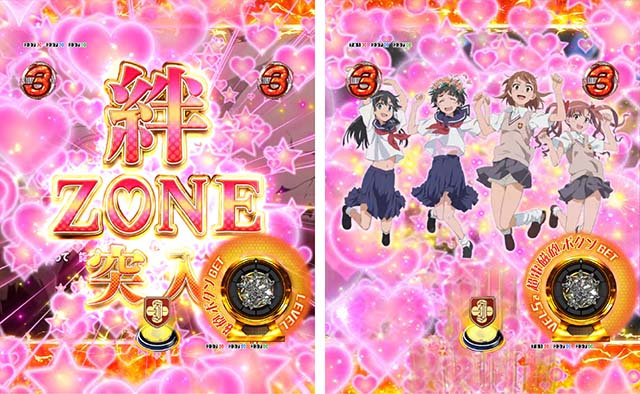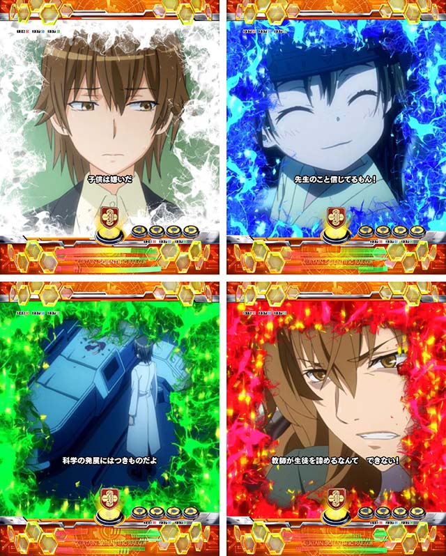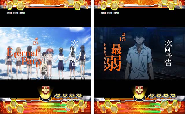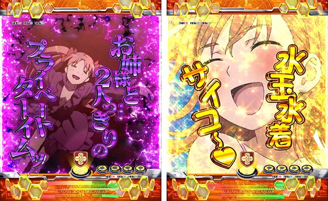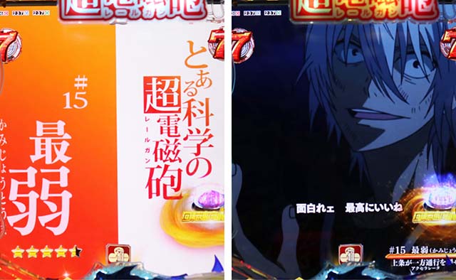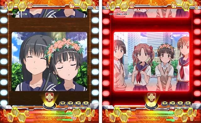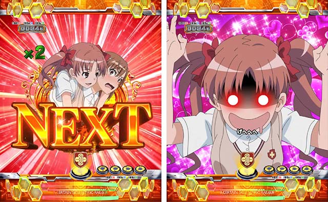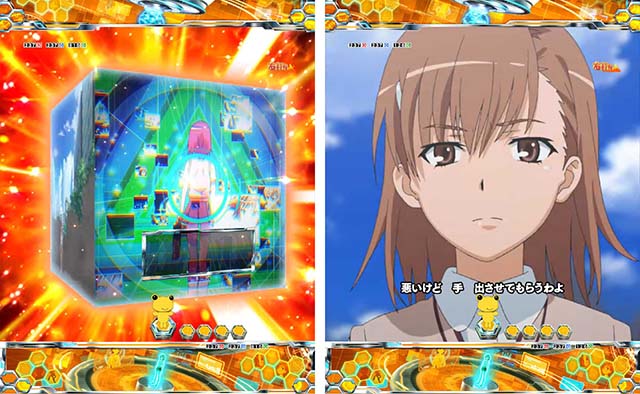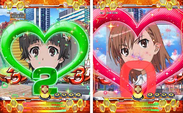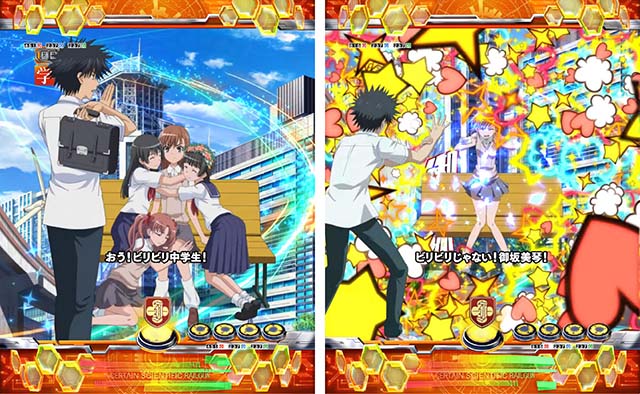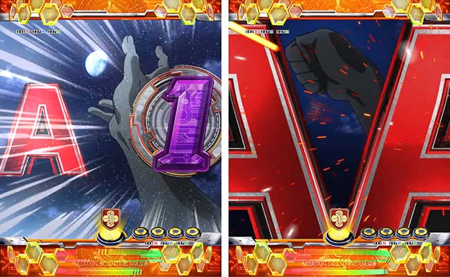 台枠全体が振動するフリーズ演出。発生後は筐体右の導光板に映し出される御坂とエフェクトの色でも信頼度が変化。