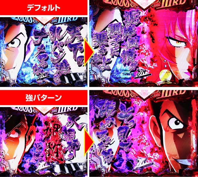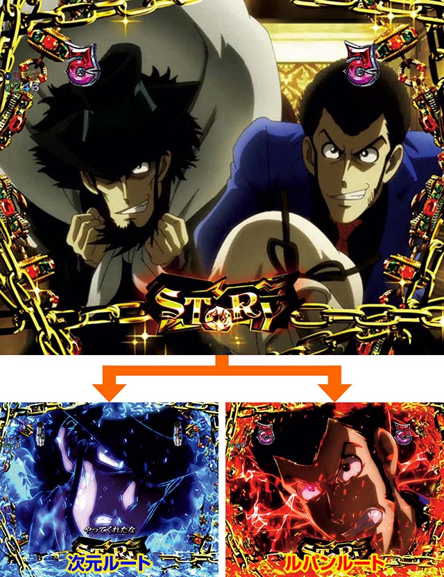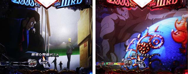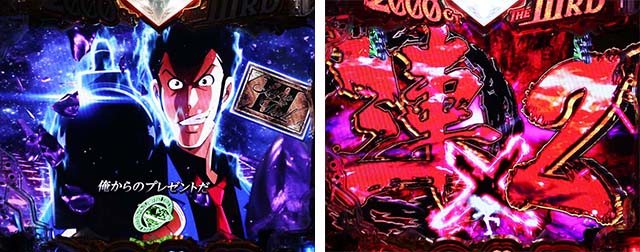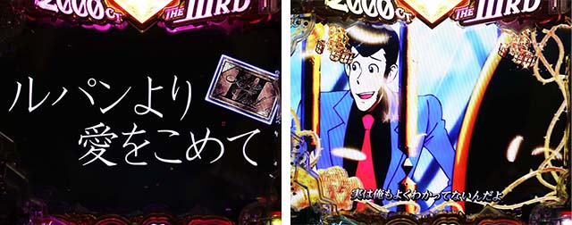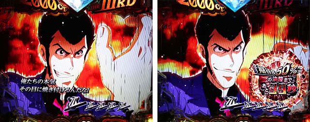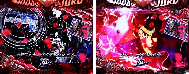 バトルSPリーチ発展時にルパン一味or銭形警部が本領を発揮し、以降強パターンに分岐するアクション。タイプライタ予告を経由した場合は信頼度が8割強に。