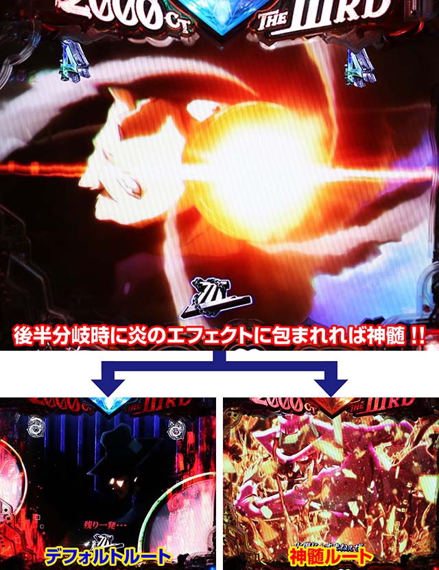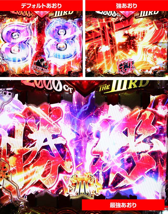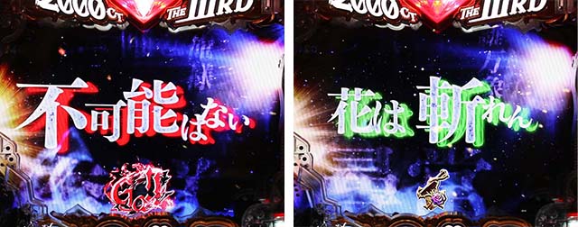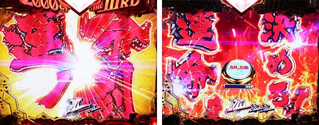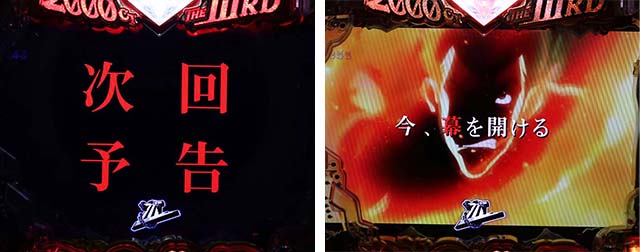 虎柄が最上位だが、存在しない予告も多くその場合は金の発生に期待。なお虹パターンなら大当り濃厚だ。