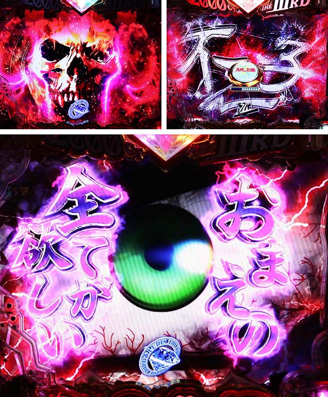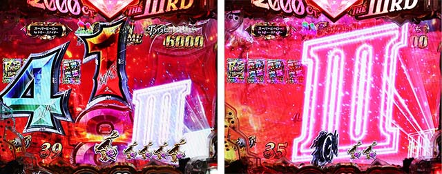 初当りを望むにはシリーズ伝統の赤Ⅲ・金Ⅲ保留がマスト。向きが逆・大きさが違うなどの違和感保留が高信頼度パターンに繋がる場合も。