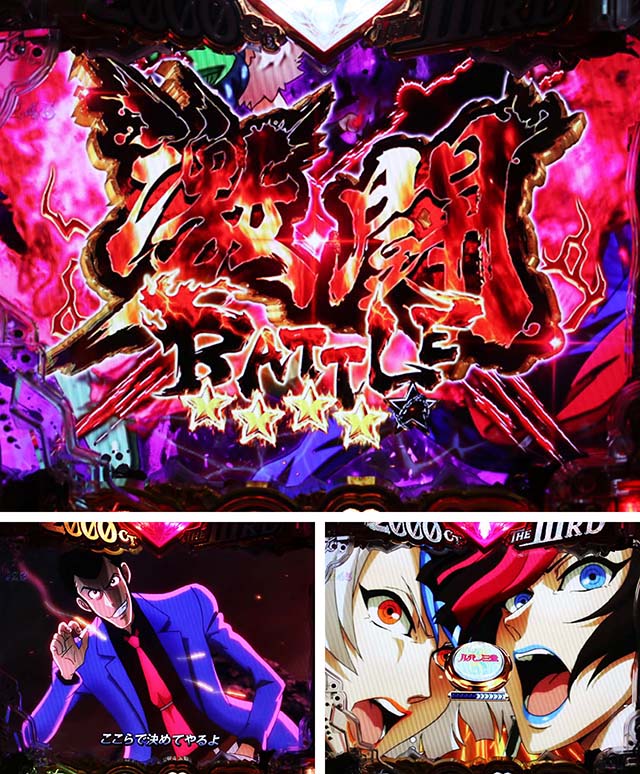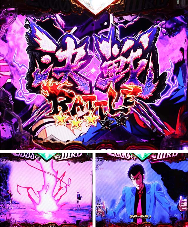 対戦相手とバトルの種類で信頼度が激変。中でも真髄バトルは大当り濃厚。各バトルごとに信頼度が上下する要素が複数搭載されている。なお、どのバトルも不二子登場で連チャン必至だ。