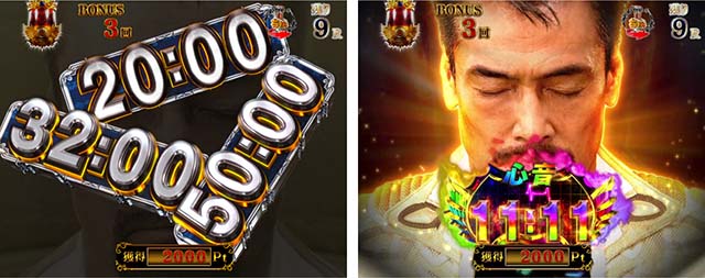 出現するタイマーの個数で期待度が変化し、2個以外で期待大。またタイマーの種類も要チェックで赤の心音タイマーで期待度アップ。さらには継続濃厚パターンも複数搭載! なお、失敗後にも復活開眼することも。