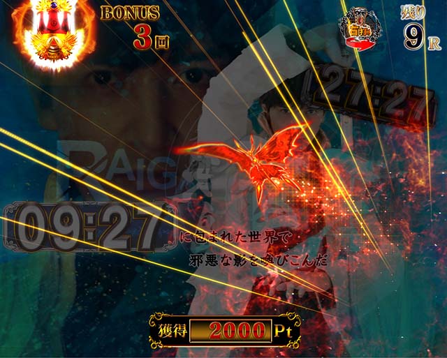 最後の一撃演出失敗後、出玉表示時に光覚獣身ガロが登場すれば復活!