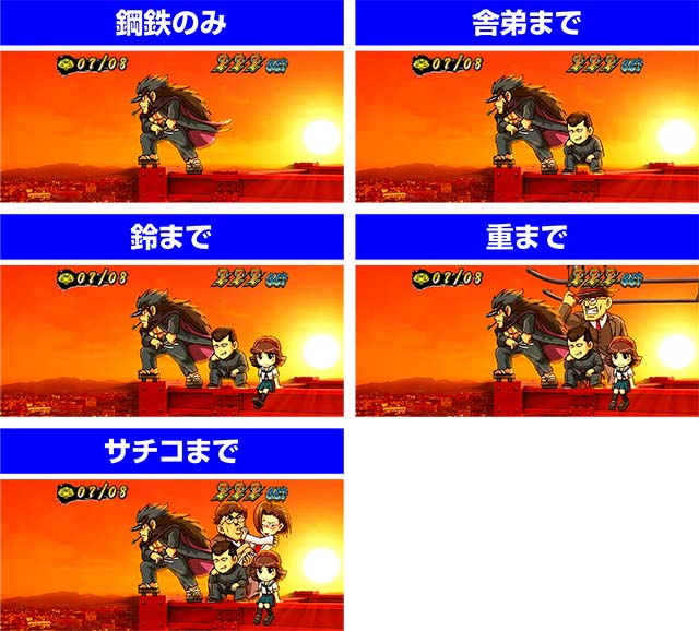 エンディングの終了画面にも設定示唆あり! 剛鉄以外が出現すると設定4以上確定だ!
