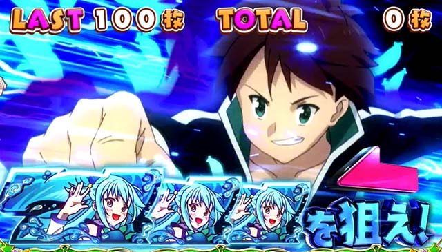 アクアの「女神の怒りを受けなさい!くらえ!ゴッドレクイエム!」のボイスが出現すると設定4以上が濃厚となる。