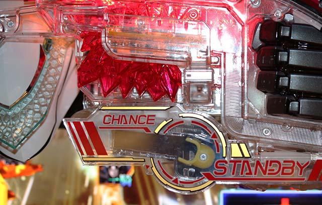 変動中などに、役物と連動して液晶にルガーランスが突き刺さる!