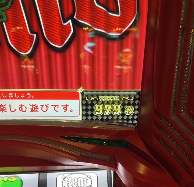 朝から狙うと、運の良いことに53Gで3択を正解し、979枚獲得。