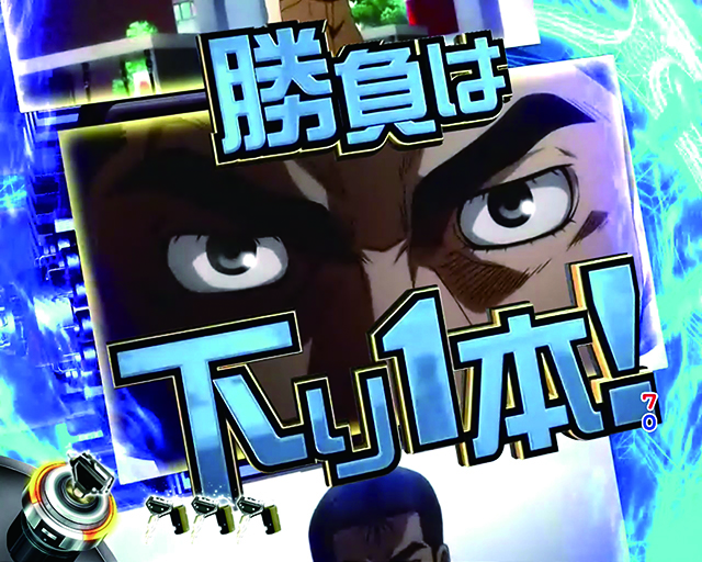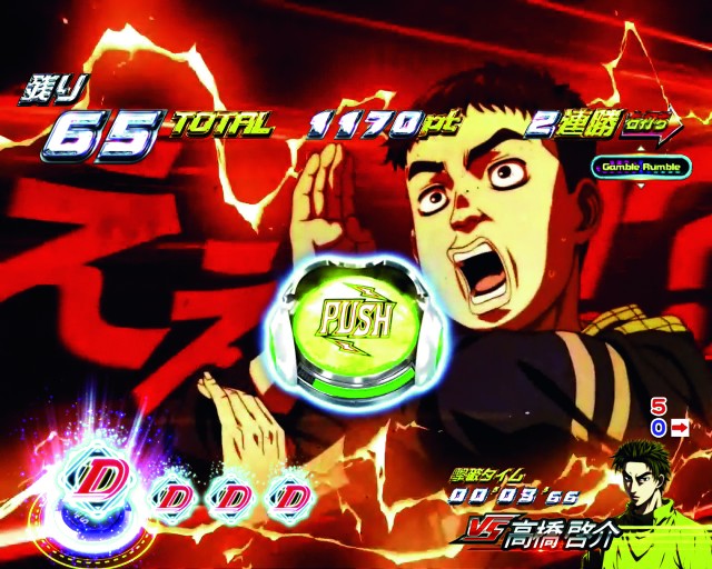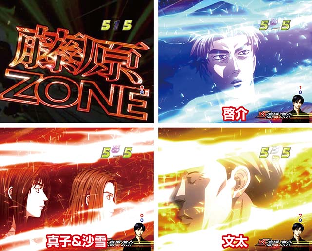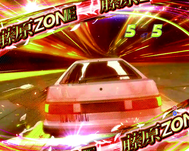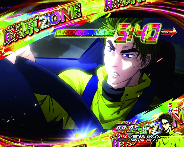 藤原ZONE突入で発生する10R大当り濃厚バトル。時短中アクションと同名だが別格だ。バトル勝利後はLEGEND BONUSへ。