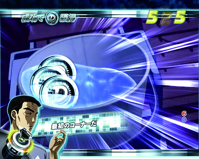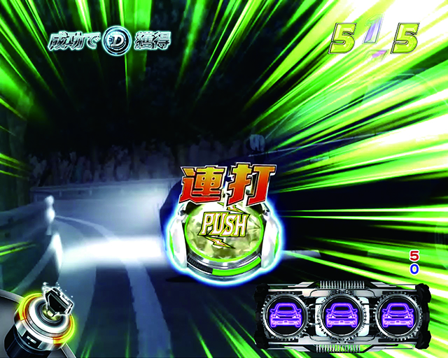 拓海が様々なドライビングテクニックを駆使し大当りを狙う。こちらも発生時トータルの信頼度が8割弱と激アツ。