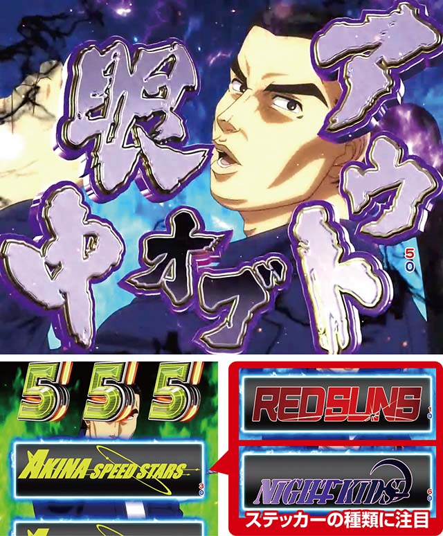 スーパー発展演出で強CLドリフトの発生から発展。トータルでは60%以上が大当りとなりチャンスアップ1つで信頼度が跳ね上がる。他リーチにはない最終カットインのキャラ&色にも要注目。