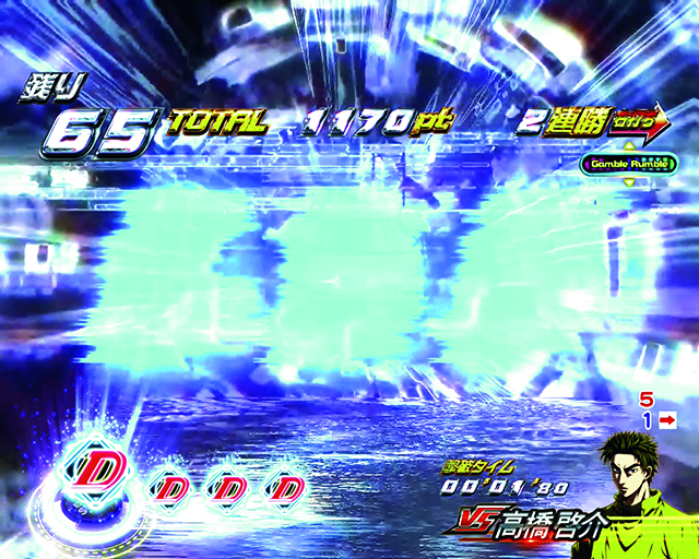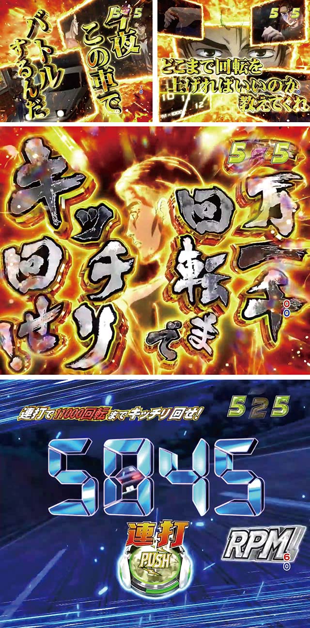 なお最終4回転はENDバトルなる専用演出が発生、涼介を振り切れば大当りだが達成できなければモード終了&電サポ抜けとなる。