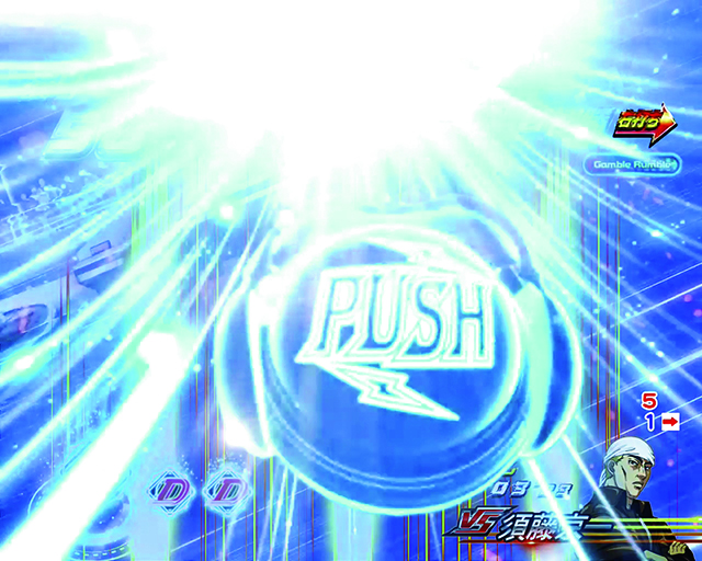 画面上部役物から光が放たれ、その色で信頼度が変化する。最終ボタンPUSHで当落が判明。