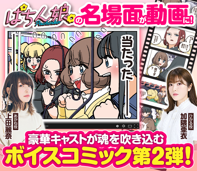 それを踏まえてお読みください。現在ぱちタウンでぶっち切りの人気を誇る『ぱちん娘。』のボイスコミック第1弾が、およそ1年前に公開されました。