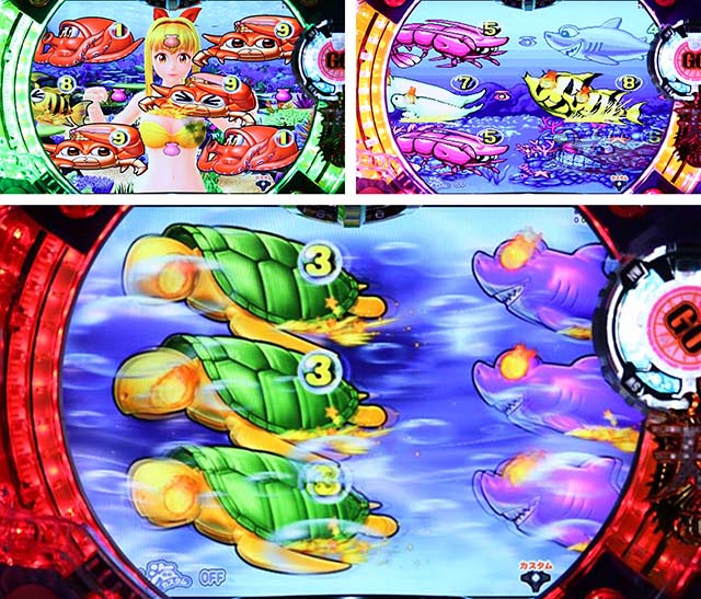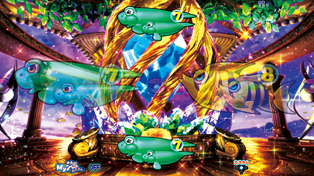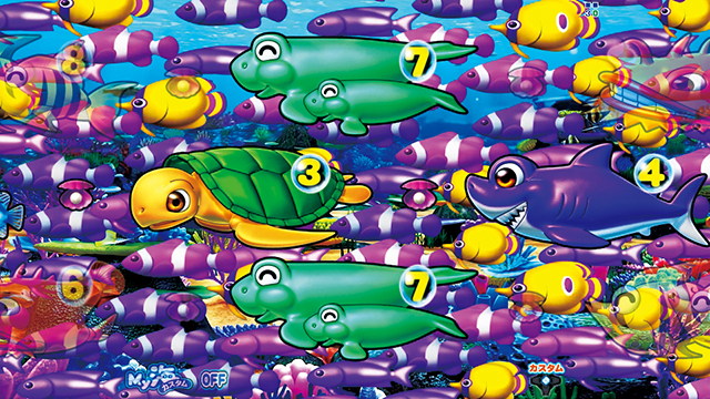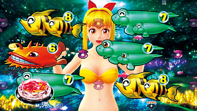 そのタイトルを受け継いだ本機にも当然魚群は存在。さらに本機では『海物語』シリーズ恒例のMy海カスタムにより、信頼度傾向を3段階で変更できる。