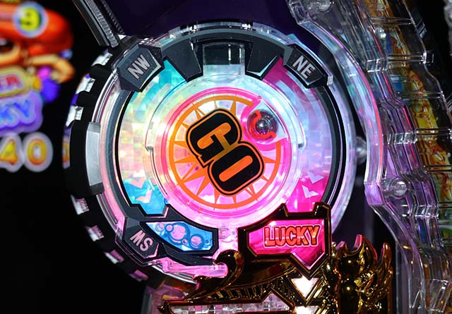 時短中大当りラウンドの回転体演出で、玉が「LUCKY」に入れば天国モード突入(初代モードからの大当りは回転体演出が発生した時点で突入濃厚)。