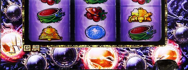 四魂ボーナスは初当りのメインとなる疑似ボーナスで、ボーナス開始時の絵柄の停止形によって期待度が変化。デフォルトは平行揃い、斜めに揃うとチャンスです。