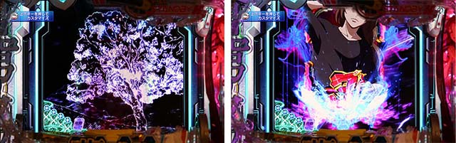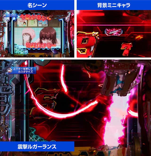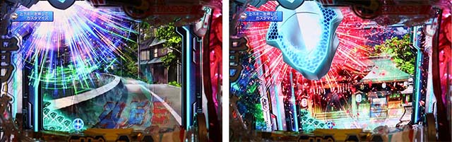 本機は2種類の演出カスタムが可能で、遊技待機中や変動中に変更可能。レバブルアップを選択すれば、小当り+連撃ルート以上濃厚となるレバブルの変動開始時発生率がアップする。先読み熱モードを選択すれば、先読み予告各種が発生した時点で9割が小当り獲得に結び付く。