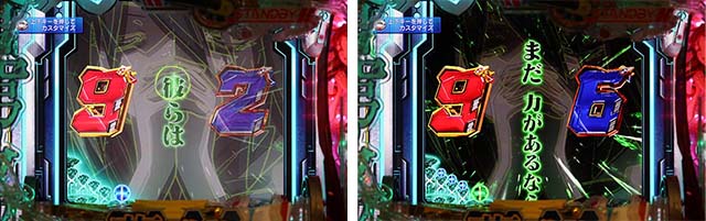 冒頭でも記した通り、小当り発生=決戦図柄停止から、役物アクションが繰り広げられる決戦Vチャレンジがスタート。上アタッカーに玉が入れば開始され、ルートによってV入賞期待度が変化し、覚醒・救済なら成功=大当り濃厚に。