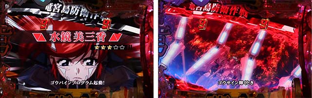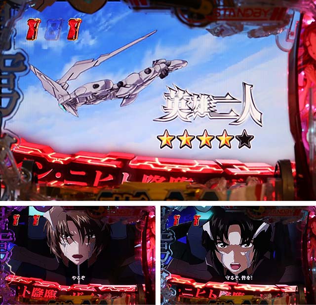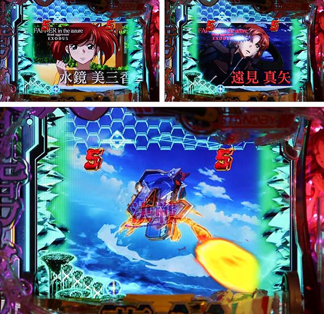 なお蒼穹作戦独自のチャンスアップとしては史彦の顔パターンがあり、ドアップなら連撃ルートの可能性大、約3分の2が大当りに結び付く。