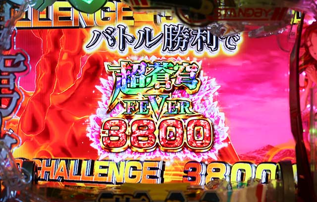 超蒼穹FEVERで3000個の出玉を獲得した後は、残り保留1個による蒼穹作戦が展開。通常時と同様に決戦Vチャレンジが行われるが、トータル信頼度が50%に大幅アップしており、成功する限り+3800個の出玉とモードがループする。