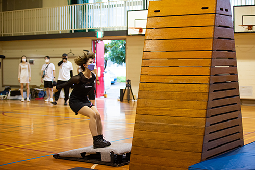 冒頭の跳び箱も競技の1つ。ぱちタウンエンジェルスが、身長の2倍はありそうな巨大跳び箱に挑んでいるシーンです。