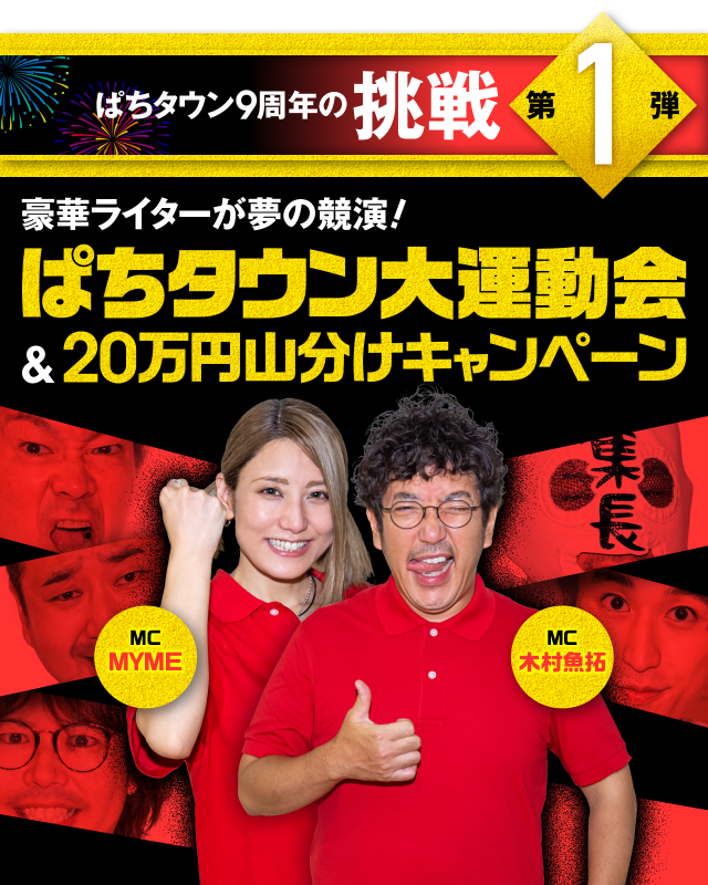 豪華ライター陣が過酷な競技の数々に挑戦する姿を楽しむ「ぱちタウン大運動会」。順位予想キャンペーンもありますよ。