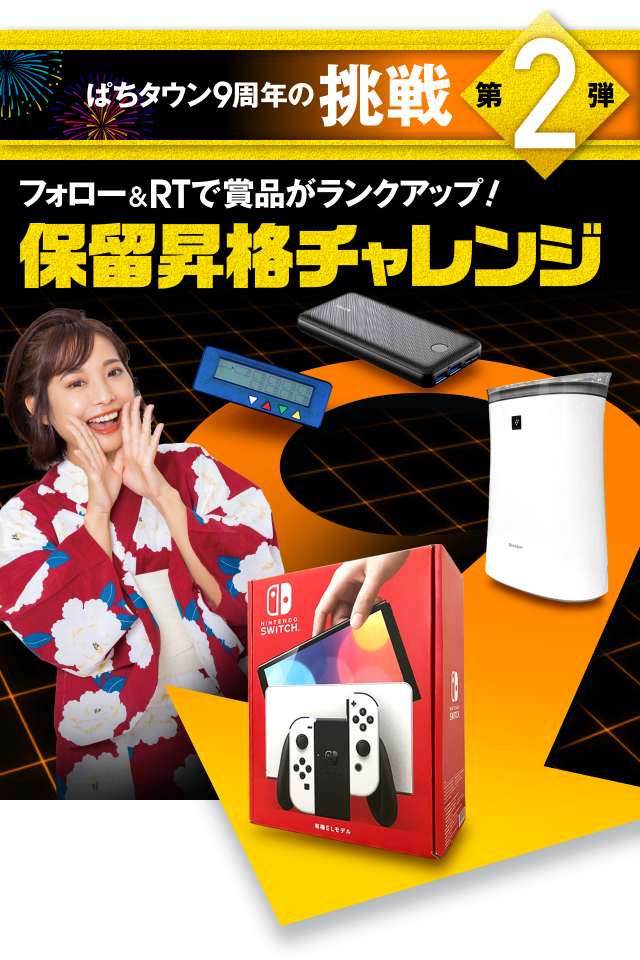 「保留昇格チャレンジ」と「ぱちタウンからの挑戦状」の2つは豪華賞品が当たるので、皆さまの挑戦お待ちしていますー!
