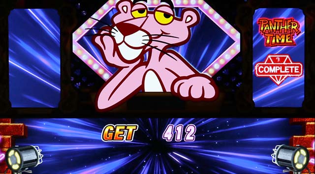 ART「パンサータイム」を456G消化して有利区間がリセット(完走)されたら、設定4以上! 完走時は液晶右側にコンプリートが表示される。設定6は9割弱が456Gが選択されるので展開次第では早めに判別することができるやも!?