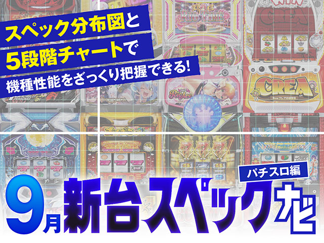 6.5号機の導入も本格化し、毎月多くのパチスロ新機種が導入されている現在。本記事では、バラエティに富んだ新台の特徴を把握できるように、パッと見でわかるスペック分布図と、個別機種のスペックが把握できる5段階チャートでリスト化して紹介していく。