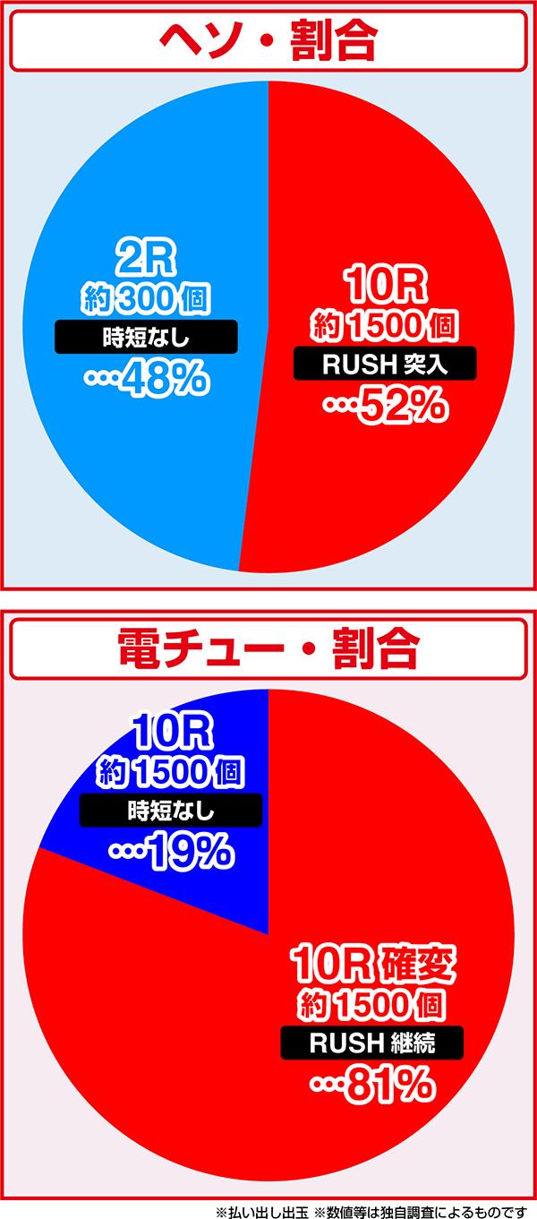 右打ち中はオール1500個の払い出しなので、RUSHに突入した時点で最低でも約3000個の出玉が約束されるんですよね。「ヒキが弱く、せっかく入れたRUSHでも即落ち450個が頻発」なんて、最近のヒキに自信がない方にも安心のスペックですよね♪