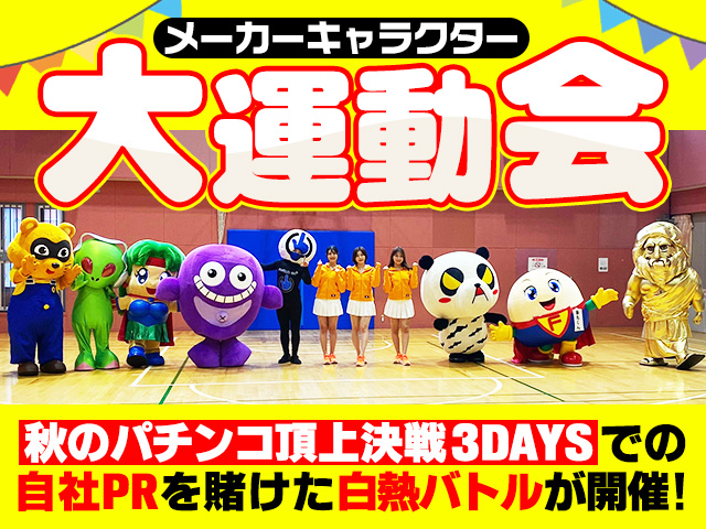 本大会は、メーカーキャラクターたちが『秋のパチンコ頂上決戦 3DAYS』 内での自社PRタイムをかけて、様々な対決で競い合うというもの。