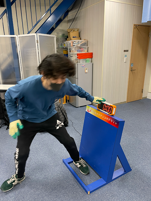 昨年取材した時や田中逆回転が極秘特訓をしていた頃には、「ゲンノウ」というカナヅチのようなものでクギを叩くのがメインの競技でした。